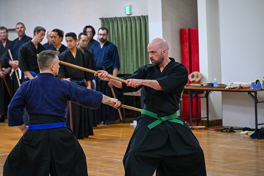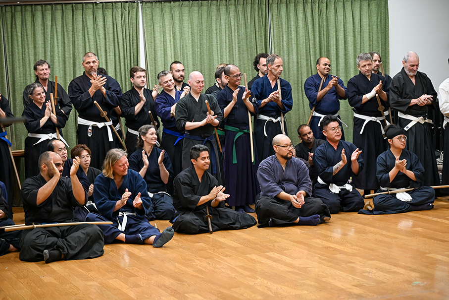 This time we welcomed 56 passionate participants who dedicated themselves to three full days—8 hours each day—of intensive practice in Kenjutsu, Iai, and Jō. Many techniques that are hard to cover in our regular online lessons were tackled head-on, and it was amazing to see everyone’s skills visibly grow stronger day by day. Seki Sensei himself was deeply pleased to witness this progress.